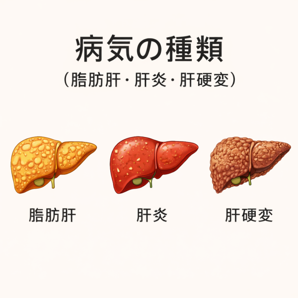 病気の種類(脂肪肝・肝炎・肝硬変)