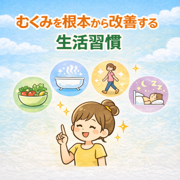 むくみは一時的な対処でも軽くなることはありますが、根本的には生活習慣が大きく関係していると考えられています。特に、食事・運動・睡眠・体の使い方などが影響しやすいポイントです。