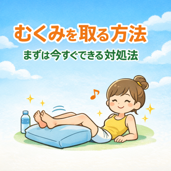 まず意識したいのは「流れを良くすること」です。血流やリンパの流れが滞ることでむくみは起こりやすくなるため、軽く動かしたり、温めたりすることが基本になります。また、同じ姿勢が続くと下半身に水分がたまりやすくなるので、こまめに動くことも大切です。