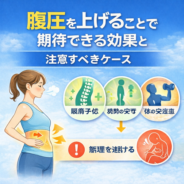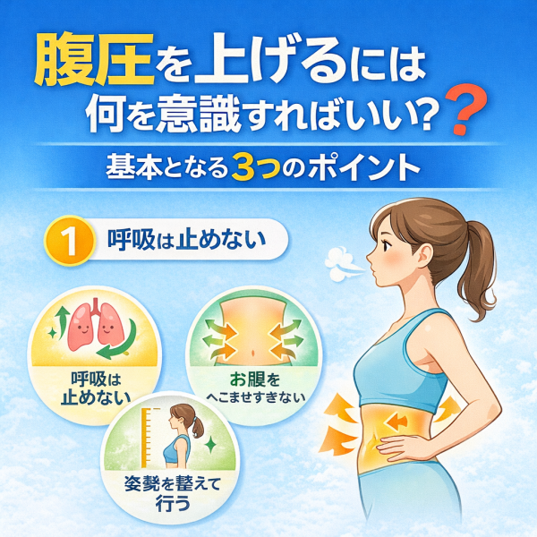 息を止めると腹圧は一時的に高まりますが、日常動作では使いづらくなります。呼吸が浅くなっていないか、常にチェックすることが大切だと考えられています。