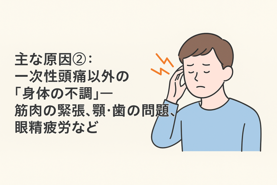 主な原因②:一次性頭痛以外の“身体の不調” — 筋肉の緊張、顎・歯の問題、眼精疲労など