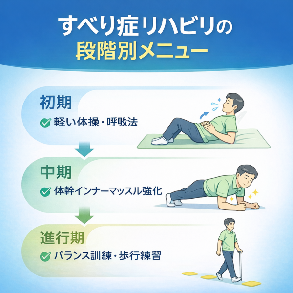 3. すべり症リハビリの段階別メニュー(初期〜進行)
