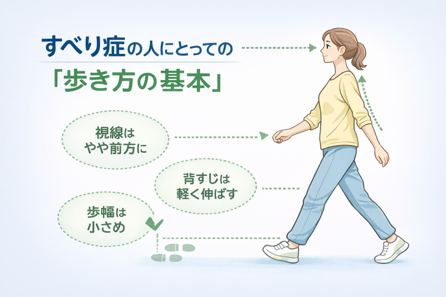 「歩くだけで痛い=歩いてはいけない」と思われがちですが、実際には歩き方や姿勢の影響が大きいケースも多いようです。そのため、すべり症と歩行の関係を正しく理解することが大切だと言われています。