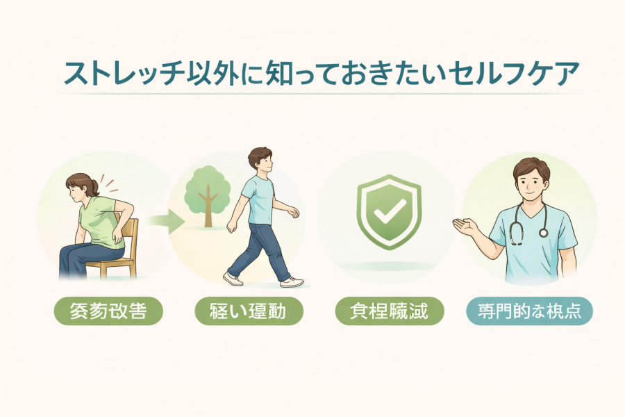 痛みが強い日や違和感が増す場合は、無理に行わない判断も重要です。「やらない勇気」もセルフケアの一部だと考えられています。
