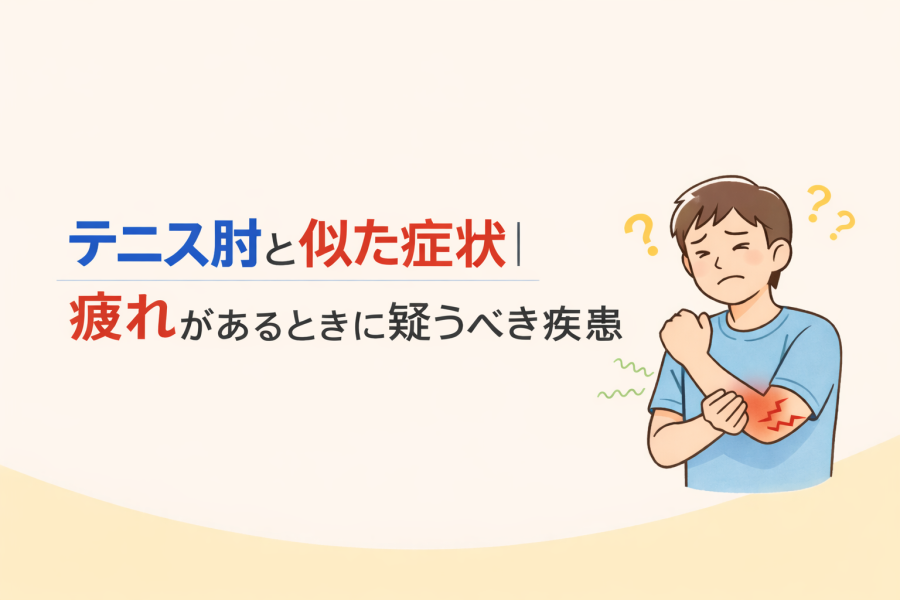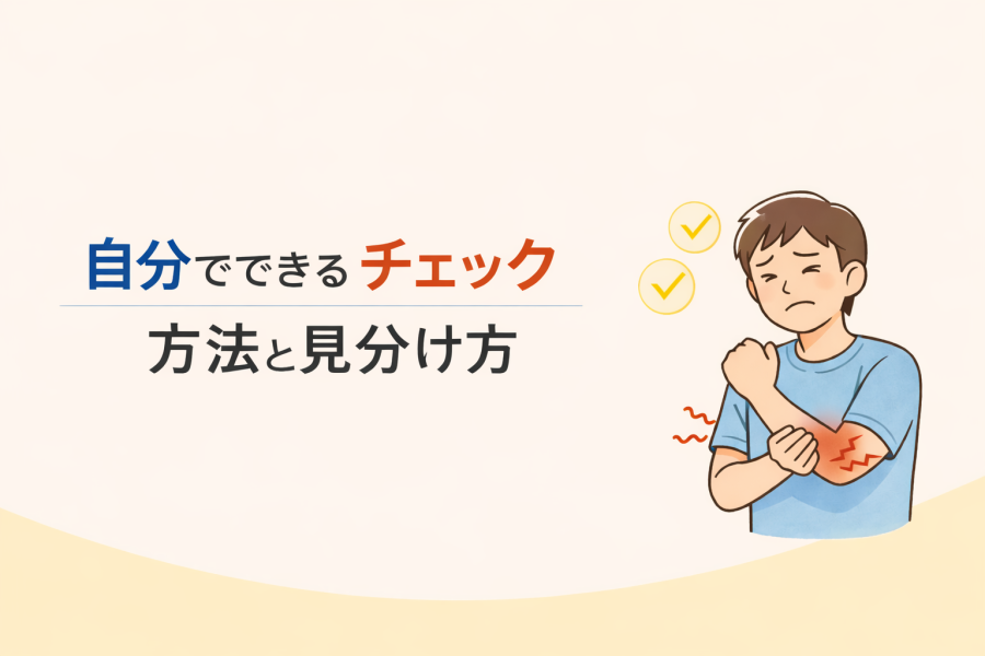 さらに、首や肩に違和感がないかもチェックしておきたいポイントです。実は肘ではなく、首からの神経が関係しているケースも少なくないとされています。こうした複合的な要因が関わることもあるため、一つの原因に決めつけないことが重要になります。
