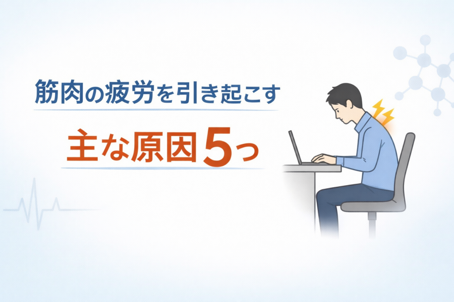 筋肉の疲労というと運動を思い浮かべがちですが、それ以外の要因も多く関係しています。もちろん過度な運動は大きな負担になりますが、日常生活の中にも原因は隠れています。