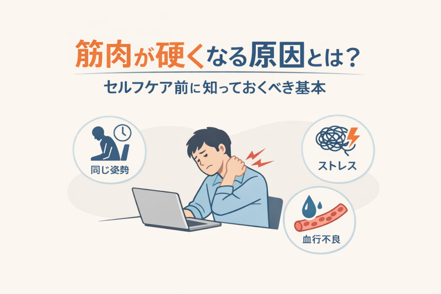 セルフケアを行う前に、まずは「なぜ硬くなっているのか」を整理することが重要です。原因がわかることで、より効果的な対策につながりやすくなります。