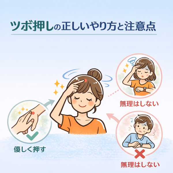 実は、そうとも限らないと言われています。ツボ押しは、やり方を間違えると逆に体が緊張しやすくなるケースもあるようです。ここでは、めまい対策としてツボ押しを行う際に知っておきたい基本ルールと、注意すべきポイントを整理します。