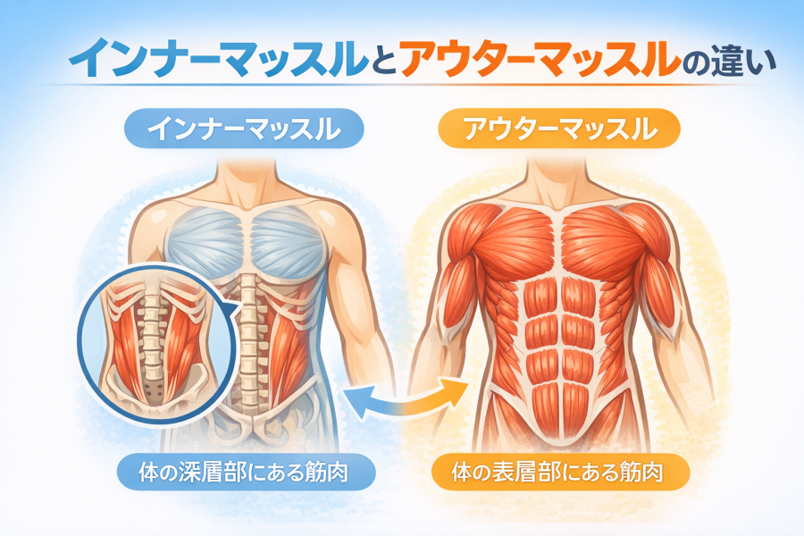 「インナーだけ鍛えればいい」「アウターは不要」といった表現を見かけることがありますが、実際にはどちらか一方だけが重要という考え方は現実的ではありません。インナーマッスルが安定性をつくり、その上でアウターマッスルが力を発揮する、という役割分担の関係にあると考えられています。