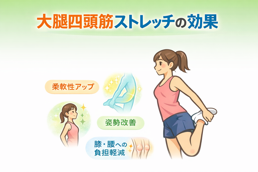 ここでは、大腿四頭筋ストレッチによって期待されている主な効果について整理していきます。