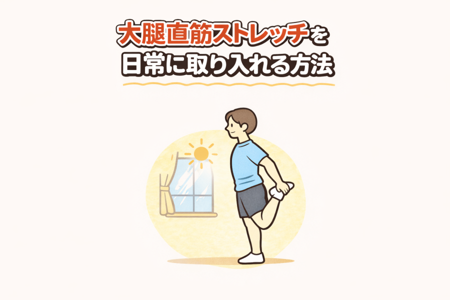 そう感じている方は少なくありません。大腿直筋ストレッチも、特別なこととして構えてしまうと、いつの間にかやらなくなることが多いと言われています。大切なのは、生活の流れに自然に組み込むこと。ここでは、無理なく続けやすい取り入れ方を見ていきましょう。
