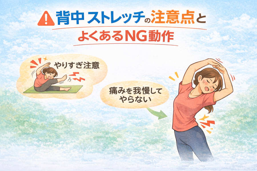 背中ストレッチは、痛みを我慢して行うものではないと言われています。痛みが出るほど無理をすると、体が防御反応を起こし、かえって緊張が強まることもあると考えられています。結果として、「ストレッチ後に余計つらくなった」と感じるケースもあるようです。