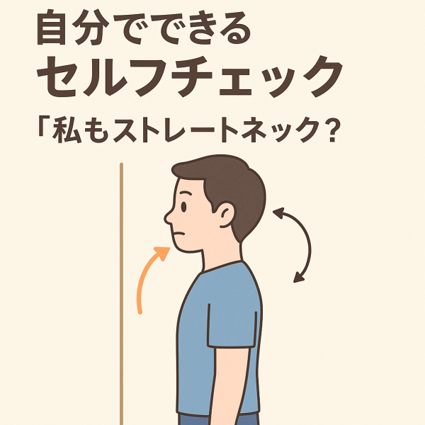 - 自宅でできる簡易チェック法(例:壁にかかと・お尻・肩・後頭部をつけ、あごを引いて後頭部がつくかなど)を紹介。