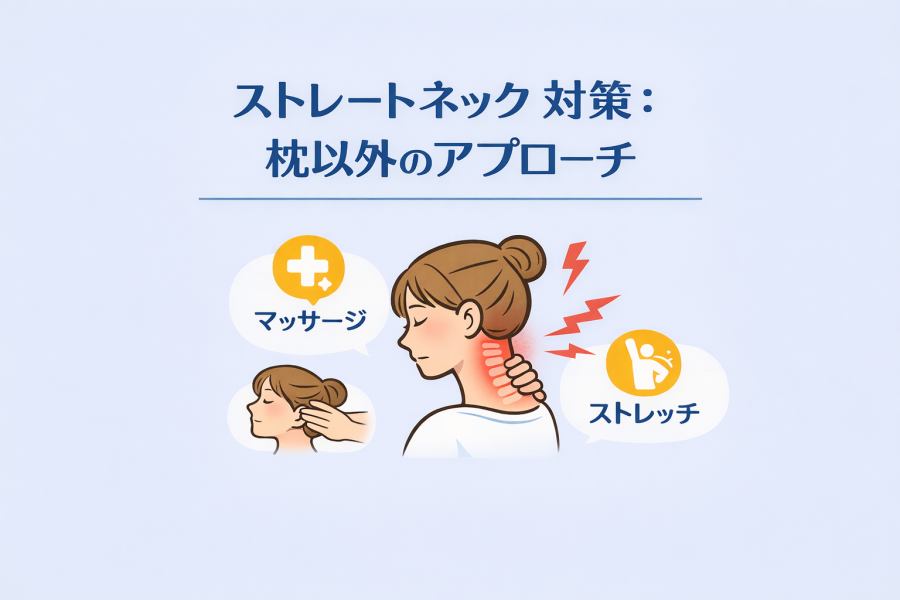 つまり、枕はストレートネックそのものを改善するというより、首や肩の負担を軽くするサポート役と考えるのが自然ですね。