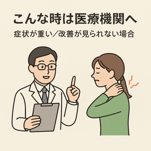 特に、しびれや強い痛み、動かしづらさが続く場合は、別の要因が隠れている可能性も考えられています。無理に自己判断せず、専門家の視点を取り入れることが大切だと言われています。
