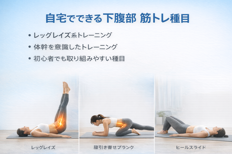 下腹部だけを動かすのが難しい人には、体幹を意識したトレーニングもおすすめとされています。例えばプランク姿勢で膝を軽く引き寄せる動きは、お腹全体を安定させながら下腹部にも刺激が入りやすいと言われています。「ちゃんと支えられてるかな?」と確認しながら行うことで、姿勢の崩れも防ぎやすくなります。下腹部 筋トレは、体幹とセットで考える方が続けやすいケースも多いようです。