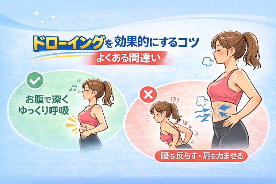 ドローイングで呼吸と体幹を連動させる意識が身につくと、動作中のブレを抑えやすくなる可能性があると言われています。