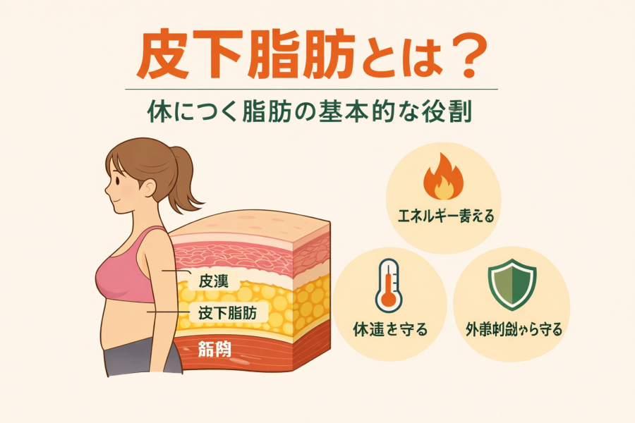 皮下脂肪とは、皮膚のすぐ下に蓄えられる脂肪のことを指します。お腹や太もも、二の腕、お尻など、体の外側に近い部分につきやすい脂肪として知られています。見た目の変化として気にされやすいため、「増える=悪いもの」という印象を持たれがちですが、必ずしもそうとは限らないと言われています。