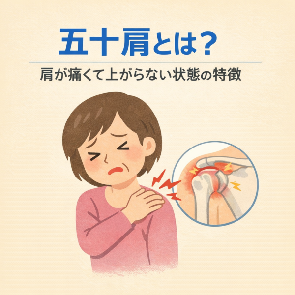 五十肩は、ある日突然「肩が痛くて動かしにくい」と感じることから始まることが多い症状です。