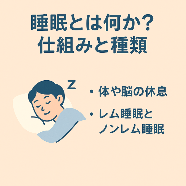 → 睡眠の生理学的役割、レム/ノンレム、睡眠周期、ホルモン・神経作用など基礎知識