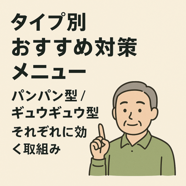 タイプ別おすすめ対策メニュー:パンパン型/ギュウギュウ型それぞれに効く取組み