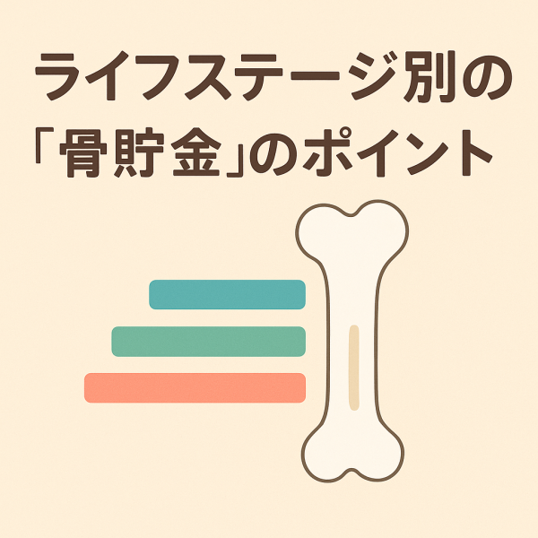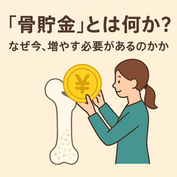 - 骨貯金の定義(骨量・骨密度を“貯める”イメージ)、加齢・女性ホルモン・運動不足による骨量低下の背景、骨折・寝たきりリスクとの関係
