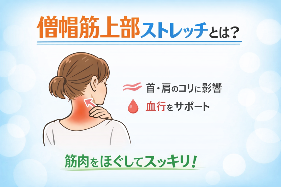 そのため、僧帽筋上部ストレッチを行うことは、筋肉全体の働きの偏りを見直すきっかけになると紹介されています。