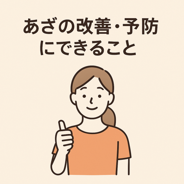 また、ビタミンCやタンパク質の摂取、適度な休養・保湿なども、あざの予防や改善につながるといわれています。