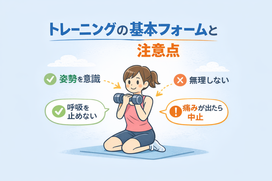 よくあるミスとして多いのが、膝が内側に入りすぎる・腰が反る・上体が前に倒れるといった動きです。