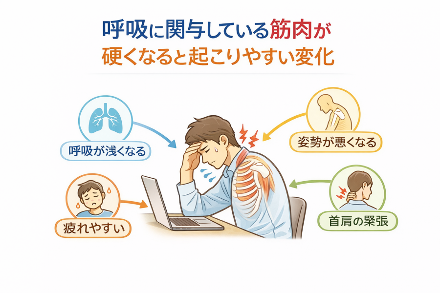 呼吸に関与している筋肉が硬くなると起こりやすい変化