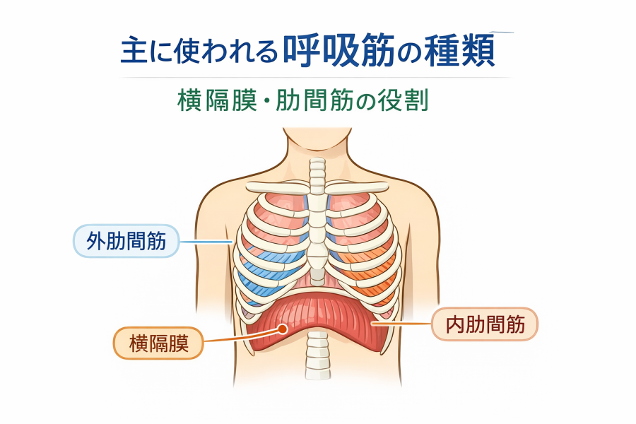 主に使われる呼吸筋の種類|横隔膜・肋間筋の役割
