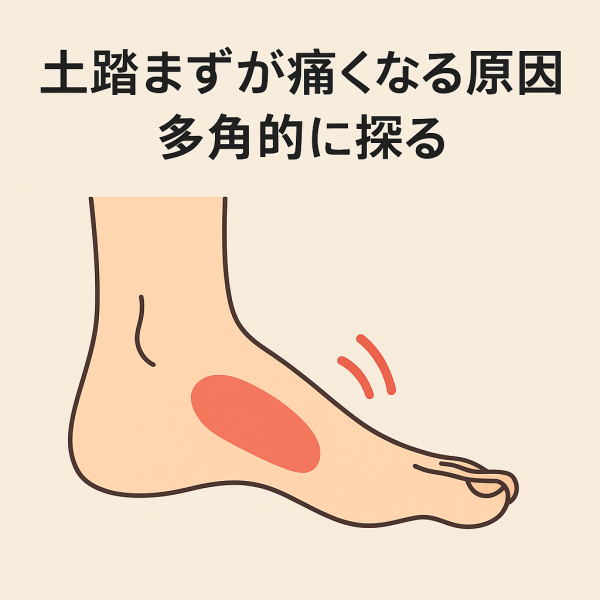 発症の背景には、アーチ構造の低下、ふくらはぎの筋緊張、靴の問題などが複合的に関係すると考えられています。