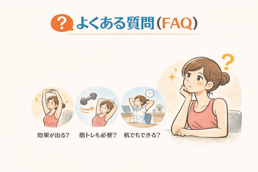 姿勢改善ストレッチについて調べていると、「結局どうなの?」と気になるポイントがいくつか出てきますよね。ここでは、よく聞かれる質問をまとめて、できるだけわかりやすく答えていきます。