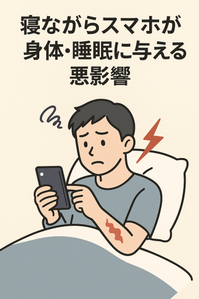 寝ながらスマホは首・肩・睡眠の問題だけではなく、目の使い方が偏ることによる斜視リスク、近距離視が続くことによる視力低下の可能性、体をひねって画面を見る姿勢による腰痛なども報告されていると言われています(引用元:https://naorusalon.com/column/nenagara-sumaho/)。もちろん全員に起こるという話ではありませんが、「なんとなく続けてしまう習慣」が体の違和感の引き金になるケースがあるようです。