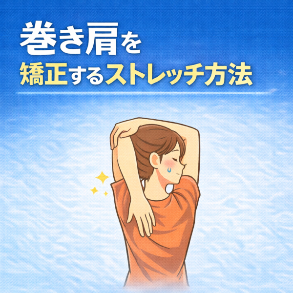 巻き肩は、前側の筋肉が縮こまり、後ろ側がうまく使えていない状態で起こることが多いと考えられています。そのため、ただ伸ばすだけでなく「どこをどう動かすか」を意識することが重要です。