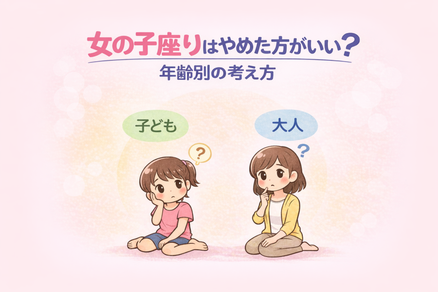 「女の子座りはやめさせた方がいいですか?」という質問はとても多いです。結論から言うと、年齢や体の状態によって考え方が変わると言われています。すぐに悪い姿勢と決めつけるのではなく、成長段階や体の使い方を含めて判断することが大切だと紹介されています。ここでは子どもと大人、それぞれの視点で整理します。