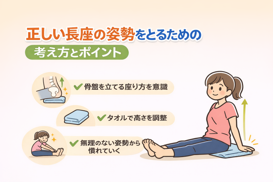 よく聞かれる質問ですが、実は“形をそろえる”より“体に合っているか”が大切だと言われています。ここでは、無理なく長座の姿勢をとるための考え方を整理していきます。