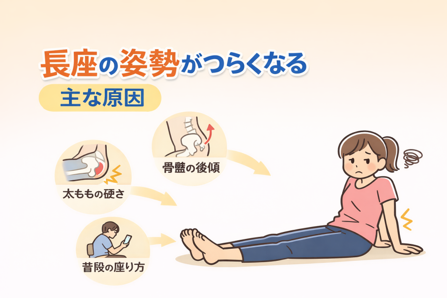 こうした声は少なくありません。長座の姿勢がつらくなる背景には、いくつかの体の要因が関係していると言われています。