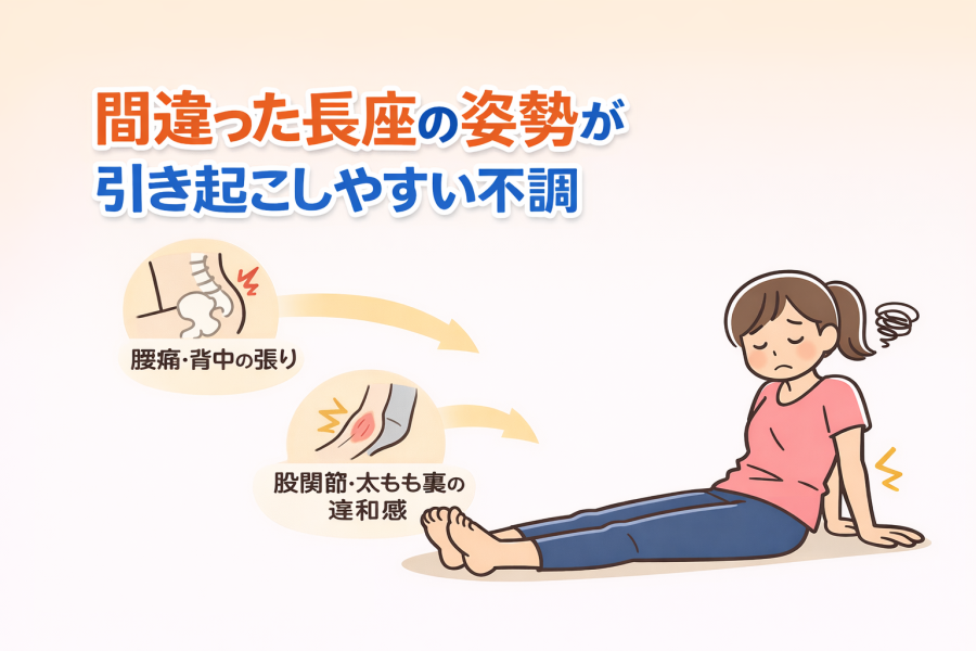そんな違和感がある場合、姿勢の取り方が影響している可能性があると言われています。ここでは、間違った長座の姿勢によって起こりやすい不調について整理します。