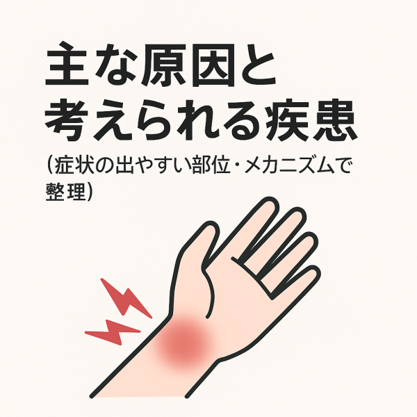 主な原因と考えられる疾患(症状の出やすい部位・メカニズムで整理)