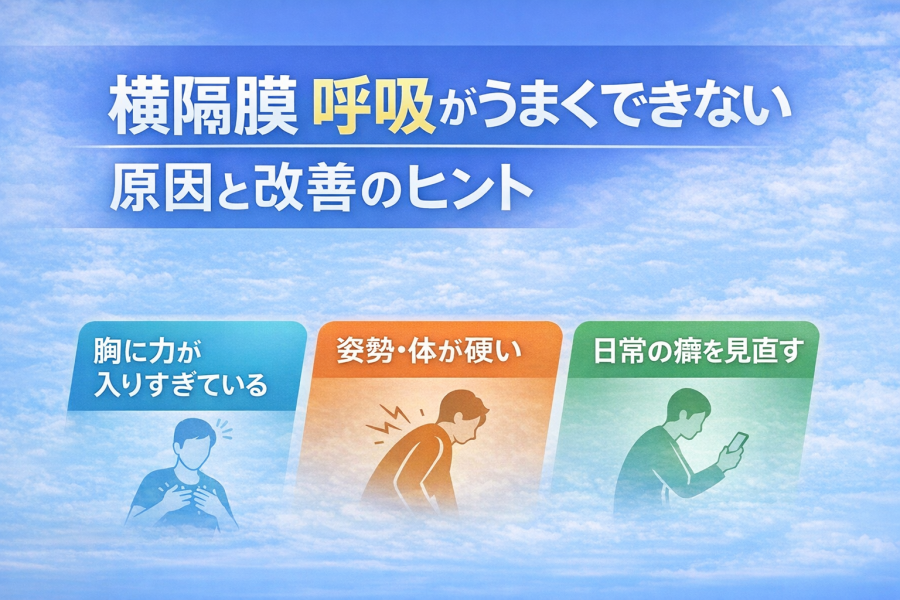 また、背中や肋骨まわりが硬いと、呼吸自体が浅くなりがちです。まずは姿勢を整え、体をゆるめる意識を持つことが、横隔膜呼吸の入り口になるケースもあるとされています。
