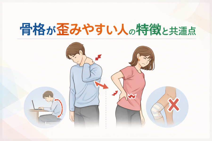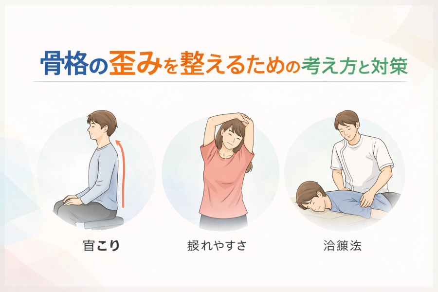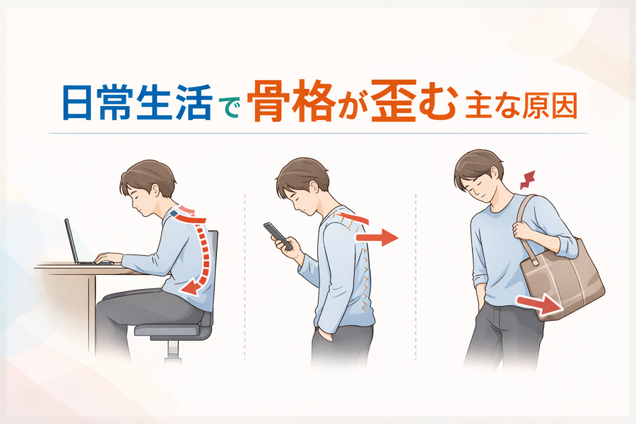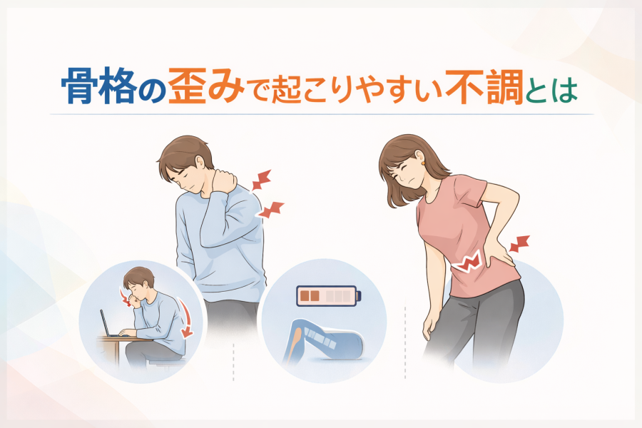 ここで注意したいのは、これらの不調がすべて骨格の歪みだけによるものではないという点です。生活習慣やストレス、体調など、さまざまな要因が重なっていることも多いとされています。