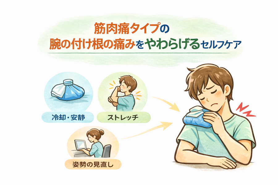 筋肉痛タイプの腕の付け根の痛みをやわらげるセルフケア
