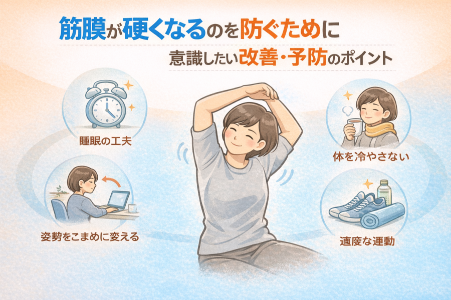 筋膜が硬くなるのを防ぐために意識したい改善・予防のポイント