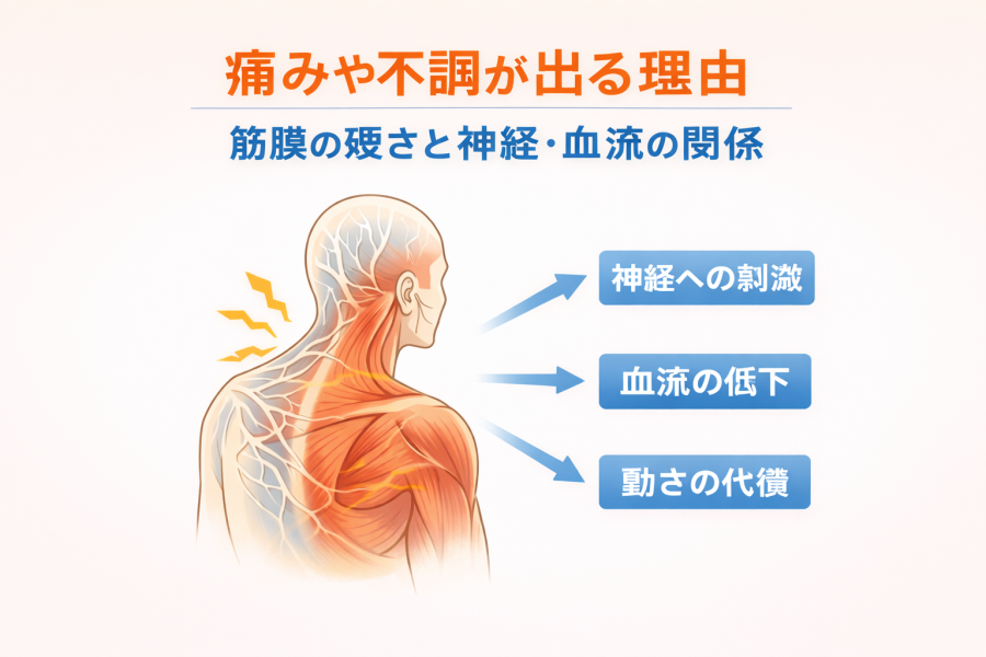 痛みや不調が出る理由|筋膜の硬さと神経・血流の関係