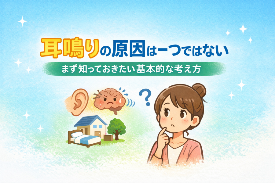 そう感じて調べ始める方はとても多いです。実際、耳鳴りの原因は一つに限定できるものではないと言われています。まずは、耳鳴りそのものをどう捉えるか、全体像を知っておくことが大切です。