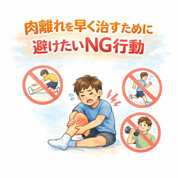 特に肉離れの初期は、筋線維がまだ安定していない状態とされているため、刺激を加えることで再びダメージが入るケースもあるようです。「ほぐせば楽になる気がする」と感じる方も多いですが、このタイミングでは逆効果になることもあると言われています。