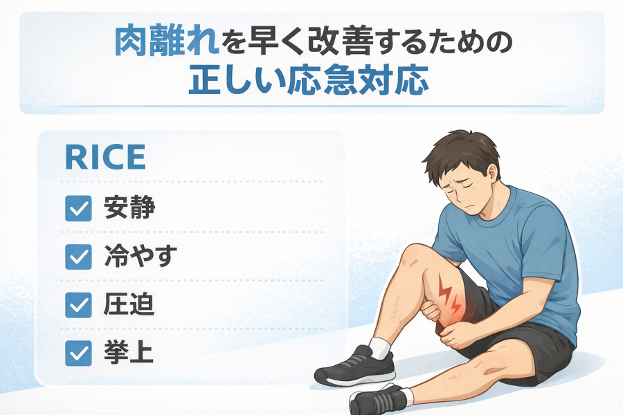 「じゃあ放っておけばいいの?」と思うかもしれませんが、無理に動かすと状態が悪化するケースもあるため注意が必要です。まずは体の中で何が起きているのかを知っておくことが、肉離れを早く改善するための第一歩と考えられています。