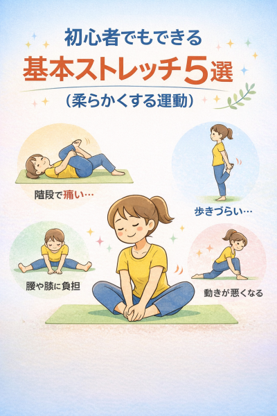 初心者でもできる基本ストレッチ5選(柔らかくする運動)