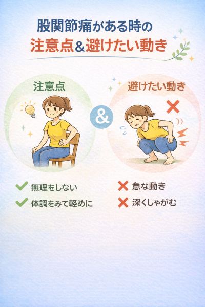 #股関節痛注意点 #NG動作 #無理しない #運動の見直し #来院目安